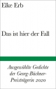 Die 1938 geborene Elke Erb hat in diesem Jahr - endlich - den Georg-Büchner-Preis erhalten. Ein guter Einstieg in ihr Werk bietet "Das ist hier der Fall" mit ausgewählten Gedichten aus 44 Jahren. Wie Erb etwa die Syntax sprengt und Mallarmé nach Prenzlauer Berg holt, wie sie in den frühen Gedichten die Ratlosigkeit der Menschen in der DDR abbildet und wie sie immer wieder penibel und bewusst Spracharbeit leistet, findet FR-Kritiker Eberhard Geisler enorm. In der NZZ bewundert Paul Jandl die "radikale Offenheit", mit der Erb der Welt begegnet - zu DDR-Zeiten ebenso wie heute. Immer gern annoncieren wir einen neuen Band von Friederike Mayröcker: "da ich morgens und moosgrün. Ans Fenster trete" - allein dieser Satz lässt einen ja schon die Hand ausstrecken. Literarische Pyrotechnik, verspricht ein euphorisierter Tobias Lehmkuhl in der SZ