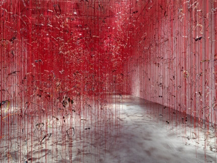 Unheimlich schweben Chiharu Shiotas spinnennetzartige Kunstwerke im Raum, sodass NZZ-Kritiker Philipp Meier in der Ausstellung "Eye to Eye" im Haus Konstruktiv in Zürich kaum die Augen abwenden kann. Die "Fadeninstallationen" der japanischen Künstlerin sind weltberühmt, in ihrer Mitte "halten sie die verschiedensten Objets trouvées gefangen", so der Kritiker, meistens Alltagsgegenstände: "Dass bei Chiharu Shiota dem Auge eine besondere Bedeutung zukommt, zeigt sich gerade an dieser faszinierenden Rauminstallation mit dem Titel 'Eye to Eye' von 2023. An der überwältigenden Menge von blutroten Fäden, eigentlich sind es dünnere Seile, hängen Tausende von Brillen. Es sind getragene Sonnen- und Korrekturbrillen, welche die Künstlerin über die Jahre gesammelt hat. Einige von ihnen weisen zerbrochene Gläser auf, andere Beispiele wirken durch die stumpf gewordene Tönung der Sonnenbrillengläser wie erblindet. Wir aber blicken gebannt auf dieses Augenmeer von unzähligen Sinnfäden und Assoziationen, die uns mit einem grösseren Geflecht von Bedeutungen verknüpfen."