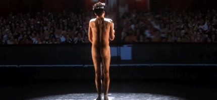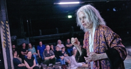 Nina Hoss als Dostojewski in Barbara Freys "Aufzeichnungen aus dem Kellerloch" in der Zeche Zollverein / Ruhrtriennale. Foto: Matthias Horn