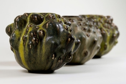 Jan Nicolaisen hat für "Bilder und Zeiten" (FAZ) die von Edmund de Waal kuratierte dänische Ausstellung "Playing with Fire" mit Werken des Malers, Dichters und vor allem KeramikersAxel Salto besucht (sie endet heute, ist aber ab 27. September im norwegischen Kunstsilo in Kristiansand zu sehen). Zuerst betritt Nicolaisen einen imaginären Ofen: "Edmund de Waal mag zu dieser Präsentation unter anderem durch eine historische Fotografie von 1956 angeregt worden sein, die Salto in einem hohen abgekühlten Ofen zeigt, in dem die Keramik 'Der Kern der Kraft/Macht' gerade fertig gebrannt worden ist. Die Kraft, von denen seine Gefäße sprechen, ist nicht die angsteinflößende Kernkraft, wie man denken könnte, sondern die Wachstumsenergie der Natur. Salto beschwört in Gefäßen, aus denen buckelige Wölbungen oder spitzige Stacheln hervorsprießen oder die Münder haben wie die Trichter von Unterwasserschloten, elementare Naturkräfte. Hier knospen und blühen Formen, Gewächsen gleich, in der Tradition archaischer und antiker Plastik wie den steinernen Pflanzen, die antike Bildhauer aus den Kapitellen sprießen ließen."