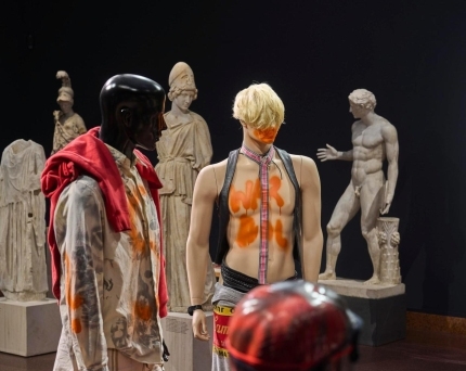 Das passt aber gut zusammen, findet Stefan Trinks in der FAZ: In einer Ausstellung im Frankfurter Liebieghaus treffen die Skulpturen der Künstlerin Isa Genzken auf Werke von ägyptischer Zeit bis ins 18. Jahrhundert. Eine vielversprechende Kombination, so Trinks, denn "in einer viele tausend Jahre umspannenden Sammlung wie der Frankfurter fügen sich Genzkens Werke geradezu harmonisch ein, weil Kunst und insbesondere Hoch- und Hofkunst häufig dem Exzess frönte, und das nicht nur im Manierismus." Die Skulpturen ergänzen und verstärken ihre Wirkung gegenseitig: "Eine weiße Gips-Pharaonin steht neben einer kräftig farbig gefassten auf von der Künstlerin entworfenen filigranen Holz-Ziehharmonika-Sockeln; beide tragen eloxierte Sonnenbrillen, die Nofretetes Eleganz trotz Verhängung des Blicks der geblendeten Gottkönigin noch betonen. Oder genauer: noch fokussieren, denn durch die semitransparente Brille der bunten Schönheitsgöttin sieht man deren Augen deutlich, und so kann der Betrachterblick den Pharaonenblick quer durch den Saal verfolgen."