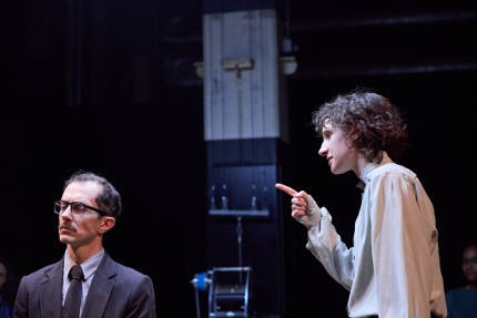 Szene aus "Eichmann - wo die Nacht beginnt". Foto: Yoshiko Kusano Der Frage nach dem Ursprung des Bösen widmet sich Roger Vontobel an den Bühnen Bern mit Stefano Massinis Stück "Eichmann - wo die Nacht beginnt" und Nachtkritiker Andreas Klaeui scheint vor allem von der Leistung der Schauspieler, die Eichmann und Hannah Arendt geben, beeindruckt: Claudius Körber "spielt das Böse als das Reguläre, er spielt nicht den Zynismus, der in der Eichmann-Figur angelegt ist, das macht den Zynismus umso größer. Immer bleibt er der kleine Junge, der einen guten Eindruck machen will, der Beste im System. Am Ende sind es opportunistische Karriere-Manöver, an denen die Massaker von Millionen Menschen hängen. Lucia Kotikovas Arendt geht dem mit Überlegenheit auf die Spur, sie betrachtet ihr Objekt wie ein Insekt, die unangezündete Zigarette in der Hand, umkreist ihre Fallstudie dozierend wie im Hörsaal, nagelt Eichmann fest mit unerbittlicher Präzision, wenn er sich in Whataboutismus und Euphemismen flüchtet, begegnet seiner opportunistischen Willfährigkeit immer mal auch mit Ironie. Die Kontrolle verliert sie einzig bei der Frage nach dem Beweggrund. Warum ging Eichmann den entscheidenden Schritt weiter?"
