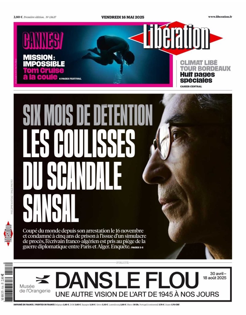 Seit einem halben Jahr ist Boualem Sansal jetzt in Haft. Libération produziert ihre erste Seite 1 zu diesem Skandal. Pascal Bruckner bringt zugleich ein Buch heraus: "Pour Boualem Sansal" mit Beiträgen von sechzig Autoren. Weiteres: Erhard Schütz kürt im Freitag die Sachbücher des Monats. Besprochen werden unter anderem Oleg Jurjews "Verse vom himmlischen Drucksatz" (NZZ), Heike Geißlers "Arbeiten" (online nachgereicht von der Welt), Georgi Demidows "Zwei Staatsanwälte" (FR), Christian Grataloups "Die Geschichte der Erde. Ein Atlas" (FR) und Georg Wiesing-Brandes' "'Walter Benjamin: Das Pariser Adressbuch'. Eine Biografie des Exils im Spiegel" (FAZ). Mehr in unserer Bücherschau um 14 Uhr.