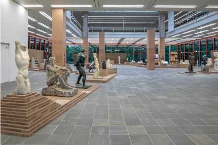 Bild: Ausstellungsansicht "Wotruba International", Belvedere 21. Foto: Johannes Stoll Im Standardfreut sich Katharina Rustler, dass das Wiener Belvedere 21 dem österreichischen Bildhauer Fritz Wotruba nach dreißig Jahren endlich wieder eine Ausstellung widmet. Selten ließ sich die stilistische Entwicklung Wotrubas so gut verfolgen: "Beispielsweise wie sich der Bildhauer nach seiner Rückkehr aus dem Schweizer Exil 1945 nach Wien vom klassizistischen Stil verabschiedete und einer kubischen Zerlegung des Körpers zuwandte. Während seine 1946 entstandene Stehende (Weibliche Kathedrale), die er angeblich aus einem Steinblock des schwer beschädigten Stephansdom schlug, noch einer realistischen Formensprache folgt, sind die Körperteile seines Denkers aus dem Jahr 1948 bereits in stereometrische Grundformen gestückelt. Die Abstraktion begann."