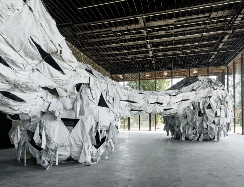 Ai Weiwei, Three Perfectly Proportioned Spheres and Camouflage Uniforms Painted White, commissioned by RIBBON International, 2025. Credit: Dmytro Prutkin and RIBBON International