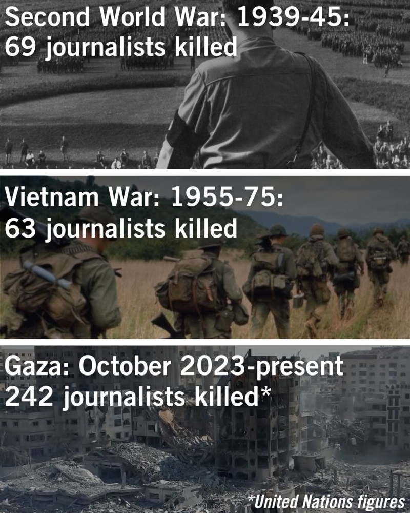 Nichtsdestotrotz wiederholte die prominente ARD-Journalistin Natalie Amiri in ihrem Bericht in den "Tagesthemen" vom 11. August 2025 diese absurde Legende: "In keinem bewaffneten Konflikt der Neuzeit war die Zahl der getöteten Medienschaffenden je so groß"(hier, Minute 14.42'). Dieses Ineinandergreifen von Fehlinformationen ist ein Musterbeispiel für die Verquickung von NGOs, dem akademischen Betrieb und der medialen Verwertung antiisraelischer und letztlich geschichtsrevisionistischer Narrative.