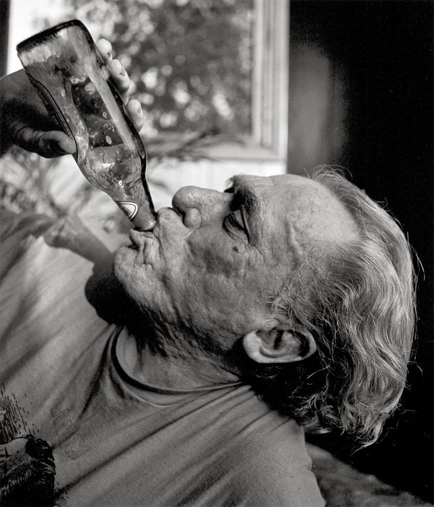 Als der Fotograf Abe Frajndlich ihn im Auftrag der Frankfurter Allgemeinen Zeitung 1985 in San Pedro besucht, ist Bukowski längst ein abgezockter Showman, der Besuchern das bietet, was sie sehen wollen: Hank, der Berserker. Frajndlich schickt Fotos des ersten Shootings nach Frankfurt, der verantwortliche Redakteur Hans Georg Pospischil bescheidet ihm knapp, dass das Material "scheiße" sei und er es bitte doch noch mal versuchen solle. Wider Erwarten gelingt es Frajndlich, Bukowski zu überzeugen - als er bei ihm auftaucht, hält ihm Hank plötzlich ein Bowie-Messer an die Kehle und fragt: "Is this what those fucking Krauts want?" Frajndlich stammelt überglücklich: "Yes! Perfect!"