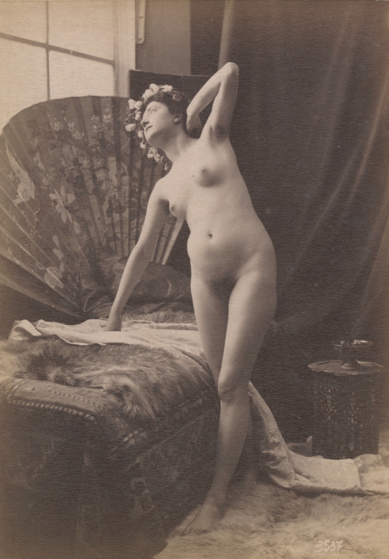 Ein wichtiger Punkt ist dabei schon damals das Edieren: ob das Negativ zur Gänze reproduziert oder nur ein Ausschnitt gezeigt wird; ob das Positiv nachbearbeitet wird (Kolorierung wurde mit der Zeit recht beliebt): in welchen visuellen oder textuellen Kontext das Endergebnis gestellt wird. Die in der Ausstellung nicht nach Werkgruppen, sondern nach Aspekten der Produktion, Zirkulation und Konsumtion gezeigten Fotografien sind wirklich interessant anzuschauen, wobei ich bekenne, dass ich mich anfangs vor allem für die Aktstudien interessierte, nicht zuletzt, weil ich selbst ein (wenn auch ganz anderes) Buch zu dem Thema veröffentlicht habe und durchwegs nackte Frauen die Grundvoraussetzung für das liefern, was sich seit Längerem in meinem Atelier abspielt.