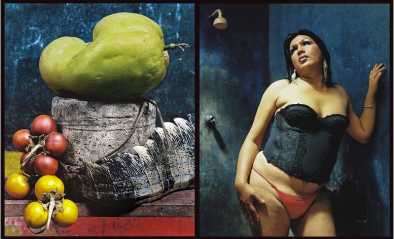 Womit wir wieder in Arles und somit am Anfang unserer kleinen Exkursion wären, uns aber noch einen allerletzten Schwenk nach Cottbus erlauben, wo es die großartige Serie "A Mazo" von Frank Gaudlitz zu sehen gibt, in der er die Porträts von Transpersonen entlang des Amazonas mit ungewöhnlichen Stillleben aus Früchten und toten Tieren der jeweiligen Region kombiniert - ich habe darauf in Fotolot schon einmal hingewiesen.