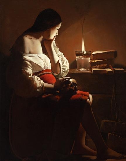 Georges de La Tour, Maria Magdalena @ Musée de Louvre Erst zu Beginn des zwanzigsten Jahrhunderts wurde er wiederentdeckt, und das ausgerechnet vom deutschen Kunsthistoriker Hermann Voss, der später als Adolf Hitlers Sonderbeauftragter den Raub europäischer Kunst für ein Führermuseum in Linz organisierte. Die erste größere Ausstellung gab's 1934 in der Pariser Orangerie, der damalige Direktor des Louvre ging von einem Flop aus - ein gewaltiger Irrtum.
