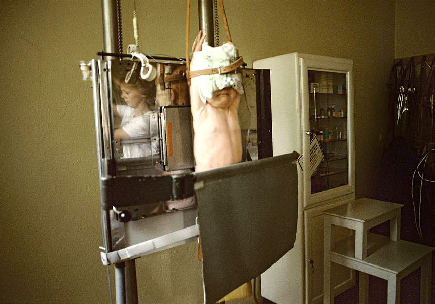 1982 begann Schulze Eldowy in Farbe zu fotografieren, die Schauplätze sind neben Berlin Dresden und Leipzig. Obwohl es sich immer noch um dieselben Motive handelt - Arbeit, Alter, Armut, Nacktheit, bekommt die Arbeit einen zyklischeren Charakter. Der Blick der Fotografin auf die Welt verändert sich, wird vielschichtiger. Es ist kein Zufall, dass die Fotos im Buch "Der große und der kleine Schritt" (ebenfalls im Lehmstedt Verlag) mit der Geburt im Krankenhaus beginnen und mit Siechtum und Tod im Krankenhaus enden. "Vom Tanzsaal gehe ich in den Kreißsaal, vom Anatomiesaal in den Schlachthof, von dort in die Oper, die Fabrikhalle und auf den Friedhof."