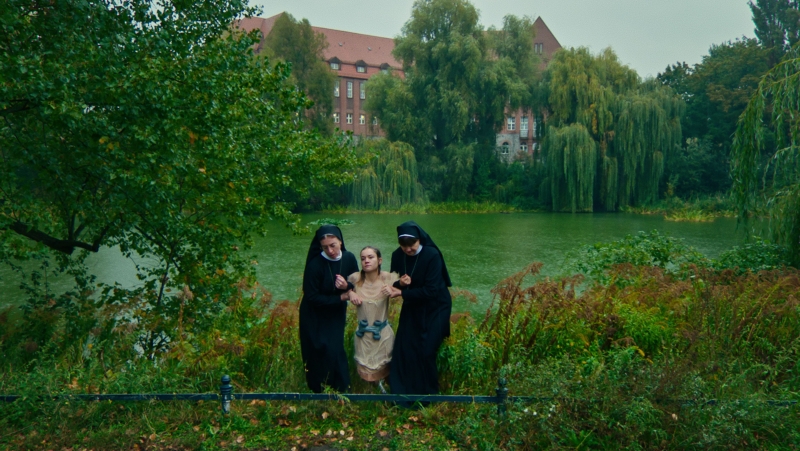 Selbst wenn man bereit ist, über die Penetranz, mit der der Film in diesen Szenen verschiedene Themen setzt, hinwegzusehen, bleibt das Problem, dass alles, was daran lustig sein sollte, ziemlich auf die Nerven geht - mir jedenfalls. Wie die Eltern, die die vier Adoleszenten wahlweise allein in Berlin zurückgelassen oder in Internaten oder Klosterschulen untergebracht haben, besteht auch der Rest der Erwachsenenwelt aus mitunter recht garstigen Karikaturen, die vor allem durch Abwesenheit glänzen. Sei es die Amtspsychiaterin Frau Dr. Doktor (Sophie Rois), deren Name sie nicht nur ganz auf ihren Beruf reduziert, sondern die auch so sehr von der alten Schule ist, dass sie zur Heilung psychischer Leiden frische Luft und ein Stück Fleisch "verschreibt". Oder eine Kinderheim-Vorsteherin, die einer jungen Frau, die sich mit ihren Pronomen vorstellt, antwortet: "Watt?"