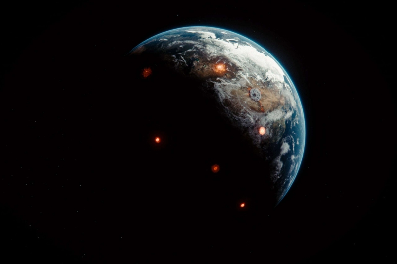 Allein in einer mit Schrott beladenen Schrottmühle durchs Weltall: Das ist die Prämisse, die früh im Film radikalisiert wird. Zu den Klängen von Chopins "Nocturnes" schauen wir durchs Raumschifffenster auf das Erdenrund hinab, auf dem zunächst eine Reihe von großflächigen Explosionen wie Zauberblumen aufblühen, bevor ein grelles Licht Melnyk und den Film kurzzeitig ausknockt. Die Erde, wird schnell klar, hat als Ganze den Löffel abgegeben. In Folge eines Atomkriegs, könnte man meinen, aber thematisiert wird das nicht näher. Ist der Planet erst einmal ausradiert, sind die Gründe nicht länger von Belang.