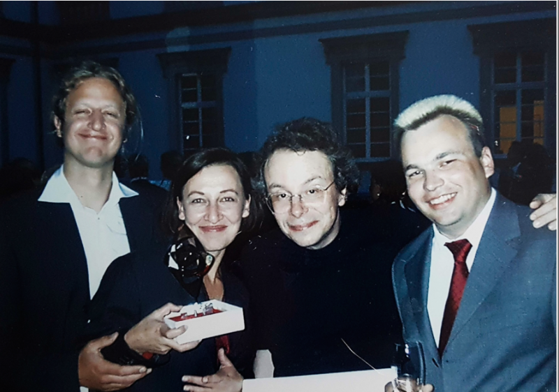 Perlentaucher 2003, bei der Verleihung des Grimme Online Awards. Niclas Seeliger, Anja Seeliger, Thierry Chervel, Adam Cwientzek.