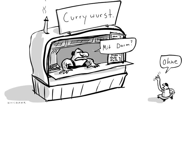 Kurzer Dialog am Wurstimbiss aufgefangen von Kittihawk.