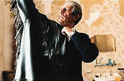 Hallyday ist also Pancho, der Bandit, und Rochefort spielt Lefty, den Mann des Wortes, der Pancho dafür bewundert, dass er ein Bandit ist, frei, ungebunden, zügellos, während Pancho vermutlich lieber Lefty wäre und ein bisschen Ruhe und Sicherheit genösse. Gewährt wird ihnen dieses Glück des Wechsels in der letzten Szene des Films; eine Parallelmontage führt die Lebensläufe der beiden ineinander. Milan wird bei einem Banküberfall erschossen, und Manesquier stirbt, im selben Augenblick, während einer Herzoperation. In einem Blickwechsel über die Grenze des Todes hinweg tauschen sie die Schicksale, der alte Lehrer wirft dem Banditen die Schlüssel seines beschaulichen, noch von der Mutter opulent eingerichteten Heimes zu und nimmt dann seinen Koffer und den kargen Weg auf, den Milan zu gehen pflegte. So sitzt zu guter Letzt Manesquier in grobkörnigen Bildern in dem Zug, in dem Milan in die Stadt kam, und Milan blättert derweil die Kunst- und Gedichtbände durch, an den Füßen die Pantoffeln seines alten Freundes."L'homme du train", Regie: Patrice Leconte, mit: Johnny Hallyday, Jean Rochefort, Jean-Francois Stevenin u.a. Fotos: image.net