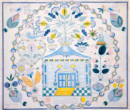Eine Geschenkzeichnung von Polly Jane Reed,  (1818-1881), A Type of Mother Hannah's Pocket Handkerchief. New Lebanon, New York, 1851. Andrews Collection, Hancock Shaker Village, Massachusetts.