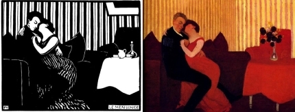 Die Filmkritikerin und -produzentin (Godard) Brooks Riley hat einen Schweizer Maler für sich entdeckt: Felix Vallotton. Mehr noch als seine Naturlandschaften interessieren sie die "inneren Landschaften der Pariser Bourgeoisie", die Vallotton Ende des 19. Jahrhunderts gemalt hat: "In einer satirischen Serie von Holzschnitten mit dem Titel 'Intimitäten' entlarvte er die amourösen Täuschungsmanöver des gehobenen Ehebruchs in nüchternen Schwarz-Weiß-Drucken, in denen Schwarz der dominierende, alles verzehrende Farbton ist. Mit Misia Sert als angeblichem Modell wurde die Serie in der anarchistischen Publikation La Revue blanche ihres Mannes Thadée Natanson abgedruckt, wo sie sofort ein Erfolg wurde. Was auch immer zwischen Vallotton und seinem Modell geschah oder nicht geschah, es blieb genug übrig, um eine Reihe schillernder Gemälde zu inspirieren, deren bemerkenswerte Farben auf ein chromatisches Vokabular der Leidenschaft hinauslaufen, in all seinen köstlich klaustrophobischen Treibhausfarben - von den dunkelsten Violett-, Blau- und Rosatönen der schwelenden Anziehung bis hin zu den flammenden Rottönen einer Lüge. Wenn man sieht, wie diese Farben von Gemälde zu Gemälde ineinandergreifen, entdeckt man in ihnen eine Sprache der Liebe - eine Palette, die eher an Gefühle als an Orte erinnert. Es handelt sich nicht um die typischen Interieurs der Bourgeoisie, sondern um gepolsterte Gefäße der Intimität, die Vallotton selbst erfunden hat, mit konspirativen Farben und Texturen, die symbolisch zusammengeführt werden. Die meisten dieser Gemälde entstanden im Jahr vor Vallottons Heirat mit der verwitweten Tochter des Kunsthändlers Alexandre Bernheim - oft als Scheinehe bezeichnet, aber dennoch eine echte Liebesgeschichte, wenn man einem Brief Vallottons an seinen Bruder Glauben schenken darf. Ob die intimen Gemälde aus jenem Jahr eine anhaltende Schwäche für Misia oder eine Leidenschaft für seine Verlobte Gabrielle widerspiegeln, wird wohl nie geklärt werden. Vallotton, der sein ganzes Leben lang Tagebuch geführt hat, hat später alles, was vor 1914 geschah, gelöscht." (Lesenswert zu Vallotton ist auch Hans-Joachim Müllers Besprechung in der Welt der Vallotton-Ausstellung 2019 in der Royal Academy in London, unser Resümee.)