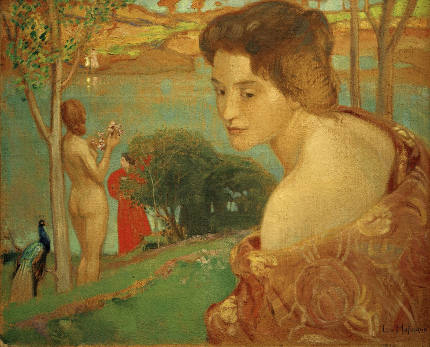 Ludwig von Hoffmann. "Mädchen am Strande (Abendstimmung)". Um 1898. Städtische Galerie Dresden Überrascht von der revolutionären Kraft der "Vereinigung der XI", der ersten Berliner Künstlergruppe der Moderne, die sich dem Akademismus des wilhelminischen Kunstbetriebs widersetzte - und zu der neben Max Liebermann unter anderem auch Max Klinger und Franz Skarbina gehörten, kommt Tilman Krause in der Welt aus der Ausstellung "Skandal! Mythos! Moderne!" im Berliner Bröhan-Museum, das auch die Bilder zeigt, für die Ludwig von Hofmann "ins Irrenhaus" gesteckt werden sollte: "Was war sein Vergehen? Nun, er hatte seine arkadischen Landschaften, seine sinnenden Frauen und merkwürdig exaltierten Jünglinge, die sich rosa Blütenzweige vor die Nase halten, in die Bonbonfarben von Mädchenzimmern getaucht. Damit verletzte er das Gebot der Dignität, das damaligem Verständnis nach zur Darstellung antiker Motive unerlässlich war. So etwas grenzte für die Vertreter eines verknöcherten Humanismus nachgerade an Blasphemie."