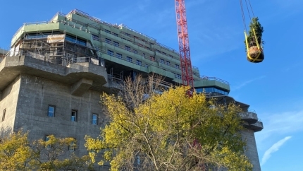 Ordentlich Grün drum rum und schon sieht der Luftschutzbunker am Hamburger Heiligengeistfeld aus wie ein friedliches Urlaubsparadies, schreiben Till Briegleb und und Gerhard Matzig in der SZ. Er ist jetzt ein "nachhaltiges Hotel" mit Konzerthalle und umlaufendem Park und Liegewiese auf dem Dach, die frei zugänglich werden sollen. Inzwischen gibt es viel Streit um das noch nicht ganz fertiggestellte Projekt: Architekten streiten sich um Urheberrechte und die Linke will wissen, warum noch niemand aufs Dach darf. Das muss halt noch wachsen, beruhigen die SZ-Reporter, die oben Efeu-, Rank- und Kriechgewächse begutachtet haben: "Deren Entwicklung soll dann relativ zügig dafür sorgen, dass der grüne Beton durch grüne Blätter verdeckt wird. Um diesen Unterschied von Nahem mitzuerleben, muss allerdings noch der so genannte Bergpfad fertiggestellt werden, die 560 Meter lange und sehr breite Rampe, die sich vom Bunkervorplatz bis auf das Dach in 58 Metern Höhe um das graue Kriegsmassiv windet. Doch schon jetzt lässt sich beim Pressetermin auf dem Dach ziemlich klar sagen, dass die vom Boden geäußerten Vorwürfe, der Grüne Bunker sei nur grünes Beton, wohl von der Bergwanderung spätestens im nächsten Frühling entkräftet werden."