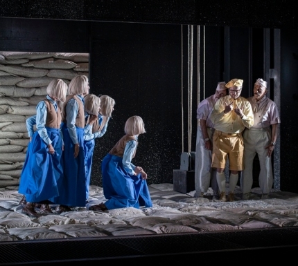 Immerhin, zum Schluss schimmert etwas Optimismus auf in Eva Langes Inszenierung von Anne Leppers Text "Jugend ohne Chor", atmetNachtkritikerin Shirin Sojitrawalla am Ende der Uraufführung im Staatstheater Darmstadt auf. Davor versuchte man in einer Backstube den Kapitalismus zu überwinden: "Um die Verkommenheit der Menschen geht es auch bei Lepper. Ihr titelgebender Chor ist dabei längst zur Massenware geworden, nichts Besonderes, man kann ihn im Internet bestellen und dann schon sehen, was man davon hat, im Kern tot, auf der Bühne in Darmstadt indes quicklebendig. Aus 60 spärlich bedruckten Seiten Text macht die Regisseurin und Co-Intendantin des Marburger Landestheaters, Eva Lange, 60 vielschichtige Minuten, die von krassen Licht- und lässigen Tonwechseln leben. Ihr Chor besteht aus sechs uniformen Menschen, die zu Anfang blonde Mireille-Mathieu-Perücken, später kahle Schädel tragen. Der Chor ist Volk, Gesellschaft, Publikum, kritisches Bewusstsein. Nichts Dramatisches mehr, sondern lediglich nice to have."