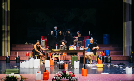 Szene aus "Biedermann und die Brandstifter". Foto: Philip Frowein Zum Abschied hat der scheidende Intendant des Zürcher Schauspielhauses Nicolas Stemann gemeinsam mit Ko-Intendant Benjamin von Blomberg Max Frischs"Biedermann und die Brandstifter" inszeniert und das über allerlei Kalauer gröhlende Zürcher Publikum scheint nicht zu bemerken, dass es hier vorgeführt wird, notiert Roman Bucheli (NZZ), der sich von Stemann nur ungern zum "nützlichen Idioten degradieren" lässt. Per Videoeinspielung lässt Stemann das Schauspielhaus samt Publikum in die Luft gehen, das Publikum jubelt - und wird zu Biedermann und Brandstifter in einer Person, so Bucheli: "Nun können endlich, wie aus dem Foyer in einer Live-Schaltung mitgeteilt wird, über dreißigtausend unterirdische Parkplätze entstehen mit ein paar tausend extragroßen Parkfeldern für extragroße SUV-Fahrzeuge. Da hat Nicolas Stemann den Zürchern, diesen Theaterbanausen, die sein Theater nicht mochten, eine tüchtige Lektion in Kapitalismuskritik erteilt. Und das Publikum johlt." Die Pointe erscheint Egbert Tholl in der SZ "kindisch, beleidigt und … der Leistung dieser Intendanz nicht würdig", insgesamt aber treibt Stemann "Frisch ins Heute, es ist in den besten Momenten ein kunterbunter Totentanz der Demokratie, auch einer der Angst um die eigenen Besitzstände." "Ganz, ganz großes Theater" vor allem dank der fantastischen SchauspielerInnen sieht indes Nachtkritikerin Valeria Heintges.