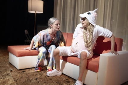 Szene aus "Blue Skies". Bild: Armin Smailovic Da ist dem SZ-Kritiker Till Briegleb der Pessismus von T. C. Boyle schon lieber: Jan Bosse hat Boyles Klimakrisen-Apokalypse "Blue Skies" als "feucht-fröhliche Desaster-Show" zum Auftakt der neuen Spielzeit auf die Bühne des Hamburger Thalia Theaters gebracht und geht dabei an Boyles Anliegen, die Gefahr für das globalen Ökosystem, vorbei: "In seiner dreieinhalbstündigen Nacherzählung des Inhalts wird vom ersten Moment an der gute Wille lächerlich gemacht und die böse Antwort des Klimawandels zur Show. Aus dem seriösen Anliegen von Mutter Ottilie, mit Grillen und Heuschrecken die Produkte der Massentierhaltung zu ersetzen, etwa macht Christiane von Poelnitz eine nach Lachern heischende Würge-Show. ... Und die biblischen Plagen erscheinen dazu in ästhetischen Bildern auf einem großen Rundhorizont." Selten hat eine Saison am Thalia Theater wohl derart "belanglos" begonnen, seufzt auch Nachtkritiker Michael Laages.