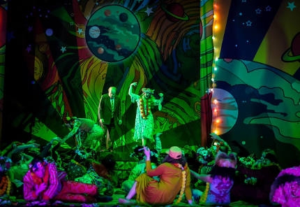 Bild: Szene aus "Die Ausflüge des Herrn Brouček". Foto: Arno Declair Wie bringt man Leoš Janáčeks selten gespielte Oper "Die Ausflüge des Herrn Brouček" zeitgemäß auf die Bühne? So wie Robert Carsen an der Staatsoper Berlin, freut sich Katharina Granzin (taz), die nicht nur dem Witz und der "visuellen Opulenz" erliegt, sondern auch gutheißt, wie Carsen die Story um den saufenden Brouček, der unvermittelt in die Religionskriege des 15. Jahrhunderts gerät, in die späten Sechziger verlegt: "Schicksalsjahre für die damalige Tschechoslowakei, bewegte Zeiten auch für den Rest der Welt. In der Mondwelt agiert ein hinreißend bizarres Ballett elfenhafter Außerirdischer und eine selbstverliebte Hippie-Gesellschaft, in die Brouček passt wie die Faust aufs Auge. Der surrealistische Space-Zirkus wird im zweiten Teil der Oper von blutigem Ernst abgelöst: Carsen hat die Hussitenwelt der Vorlage in die Zeit der Niederschlagung des Prager Frühlings überführt. Ein gigantisches Fernsehbild in Bühnenraumgröße zeigt uns Videos zum Zeitgeschehen, sowjetische Panzer auf den Straßen von Prag, demonstrierende Zivilisten, die Kneipenszenerie der Bühne ist mit Aufschriften in mehreren Sprachen versehen, darunter auf Russisch: 'Idite domoj - Geht nach Hause'. Die beklemmende Ahnung stellt sich ein, dass Geschichte sich ständig wiederholt."