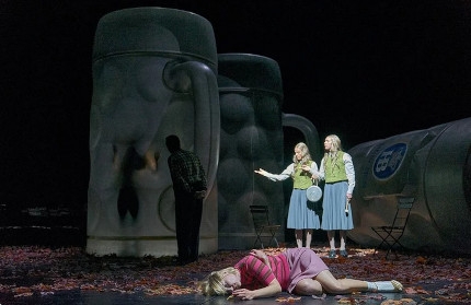 Besprochen werden: "Imagine" von Kay Voges am Schauspiel Köln (taz), Tobias Kratzers Intendanz an der Hamburgischen Staatsoper beginnt mit dessen Inszenierung von Robert Schumanns "Das Paradies und die Peri" und, gemeinsam mit Matthias Piro inszeniert, die Kinderoper "Die Gänsemagd" von Iris ter Shiphorst, Libretto von Helga Utz (FR), Ayad Akhtars KI-Stück "Der Fall McNeal" am Deutschen Theater Berlin, Regie führt András Dömötör (SZ), Barrie Koskys "K." mit Texten von Franz Kafka am Berliner Ensemble (Nachtkritik, Tagesspiegel), "Glaube Liebe Hoffnung oder Leistung muss sich leider lohnen" von Gerlinde Steinbuch auf Basis von Ödön von Horvath am Theater Konstanz, inszeniert von Nina Mattenklotz (Nachtkritik) und Dostojewskis "Spieler" in einer Inszenierung von Johan Simons am Schauspielhaus Bochum (Nachtkritik).