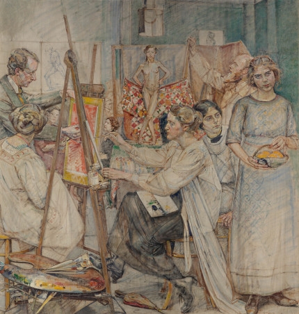 Gertrud von Kunowski: Die Malschule. Credit: Bauhaus-Archiv Berlin, Gerrud von Kunowski Dank der Kuratorin Kathrin DuBoiskann Jörg Restorff (Monopol) in der Ausstellung "Künstlerinnen! Von Monjé bis Münter" im Kunstpalast Düsseldorf so einige interessante Kunstwerke entdecken. Die Ausstellung lenkt den Blick auf Künstlerinnen, die zwischen 1819 und 1919 in Düsseldorf gearbeitet haben, letzteres Datum markiert die "schrittweise Öffnung der Kunsthochschule für Frauen". Hier werden anhand von 31 Künstlerinnen die zahlreichen Facetten ihres Könnens gezeigt: "Ihre Selbstporträts scheinen uns in direkte Tuchfühlung mit ihnen zu bringen. Diese Nähe über eine Distanz von mehr als 150 Jahren hinweg vermittelt am eindrücklichsten das vitale Selbstbildnis, das Mathilde Dietrichson 1865 anfertigte. Nicht von ungefähr wurde es als Cover-Motiv des Katalogs ausgewählt. Die norwegische Künstlerin, damals 28 Jahre alt, wendet den Kopf nach rechts, um uns geradewegs ins Gesicht zu blicken - so, als wolle sie Kontakt zum Betrachter aufnehmen. Sie hatte ihre Ausbildung in Düsseldorf 1857 begonnen. (…) Obwohl Mathilde Dietrichsons Bilder international präsent waren - unter anderem auf der Weltausstellung 1878 in Paris -, verblasste ihr Ruhm schon zu Lebzeiten."