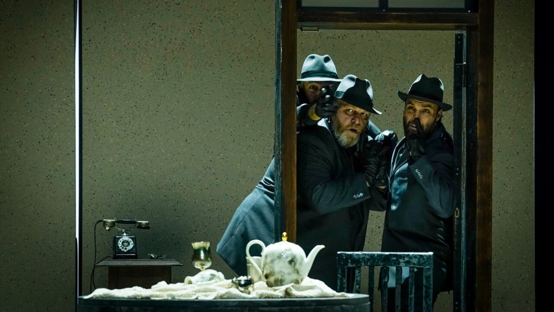 Viele Bühnenadaptionen von Michail Bulgakows "Der Meister und Margarita" scheitern an den begrenzten Möglichkeiten der Bühne, erinnert Helene Röhnsch in der FAZ. Der im Exil lebende russische Regisseur Timofej Kuljabin hat sich nun entschieden, aus der Not eine Tugend zu machen und bringt die teuflische Geschichte am Schauspiel Frankfurt in radikaler Reduktion auf die Bühne. Der Satan ist nicht mehr in der Stadt, selbst alle Hauptfiguren sind nicht mehr anwesend. Stattdessen vertraut der Regisseur auf die Kraft zu des Textes und lässt Augenzeugen im Kreuzverhör vor dem NKWD die Ereignisse wiedergeben: "Manja Kuhl, Wolfgang Vogler und Stefan Graf spielen die Ermittler mit nuancierter Selbstbeherrschung, wechselnd führt die eine das Protokoll, der andere filmt die Zeugen (...) und der Letzte stellt die Fragen (...) Doch die kollektive Schizophrenie, die sich weder protokollieren noch einhegen lässt, hat ihre eigene Wahrheit, die den Ermittlern die Grenzen ihres Staatsterrors vor Augen führen: Hin und wieder ermatten sie unter der Beweislast, die ihnen die eigene Korruptheit vor Augen führt. All das wird auf verstörend subtile Weise bis zur letzten Minute des Abends herausgearbeitet (...)."