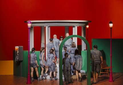 Marie Schleef hat am Schauspiel Essen Shirley Jacksons Kurzgeschichte "The Lottery" inszeniert: Es geht um ein Ritual, dessen Grausamkeit sich erst am Schluss offenbart - auf der Bühne wird nun kein Wort gesprochen, wie Alexander Menden in der SZ so erstaunt wie begeistert feststellt. Stattdessen hört man die Stimmen von Jackson und ihrem Sohn aus dem Off, dann wird es unheimlich: "Die Figuren, gekleidet in sektenartig uniformes Grau mit weißen Farbspritzern, bewegen sich extrem verlangsamt - ein stilistisches Markenzeichen der Regisseurin - über den leuchtend farbigen amerikanischen Dorfplatz, den Ji Hyung Nam gebaut hat: Um den Pavillon im Zentrum der sich kaum merklich drehenden Bühne des Grillo-Theaters versammelt sich nach und nach die Bevölkerung eines nicht benannten Ortes. Man begrüßt sich, schwatzt lautlos auf einer Bank, alles wirkt fast banal alltäglich. Kaum etwas deutet auf eine kollektive Untat hin. Nur eine kopflose Engelsstatue und ein Häufchen an der Rampe aufgeschichteter Steine zeugen davon, dass sich hier etwas zusammenbraut."