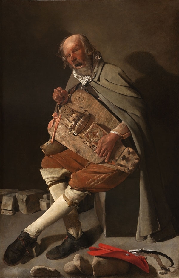De La Tours frühe Arbeiten zeigen, mit Anlehnung an die niederländische Genremalerei, primär das ländliche Frankreich der Bauern und Mägde, dazu Straßenmusikanten und Bettler, die ums tägliche Überleben kämpfen. "Die Erbsenesser", eine Leihgabe aus der Berliner Gemäldegalerie, ist dafür ein gutes Beispiel. Den Gesichtern des Mannes und der Frau lässt sich nicht nur der Hunger, sondern alle Entbehrung und Verbitterung über ihr von Armut geprägtes Dasein ablesen, das de La Tour unbarmherzig ausleuchtet.