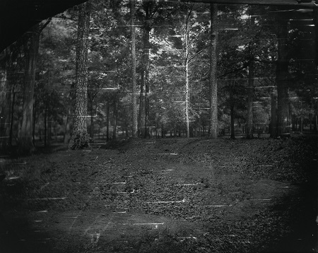 Die mit Collodium bestrichenen Glasplatten und die antiken Linsen erschaffen eine ideale Atmosphäre, die nicht nur den Pulverrauch, den Morgennebel vor dem Angriff, das beinah schwarze, eingetrocknete Blut spürbar machen, sondern auch die Tatsache, dass diese und andere Tote sich als Gespenster in der amerikanischen Geschichte herumtreiben, Zombies, die immer wieder auf die Kluft zwischen Norden und Süden, schwarz und weiß, reich und arm verweisen, wie sie in Teilen der USA ungebrochen ist. Mann nutzt die anfällige Technik für Zufälle und Manipulationen: um das den ganzen Tag und die ganze Nacht anhaltende Dauerfeuer in einem Dickicht darzustellen, überzieht sie das Collodium mit Staubfäden, die auf dem bedruckten Papier als zarte, weiße Schlieren sichtbar werden, sodass man die hin- und hersausenden Kugeln zu sehen glaubt ("Cold Harbor Battle", 2003).