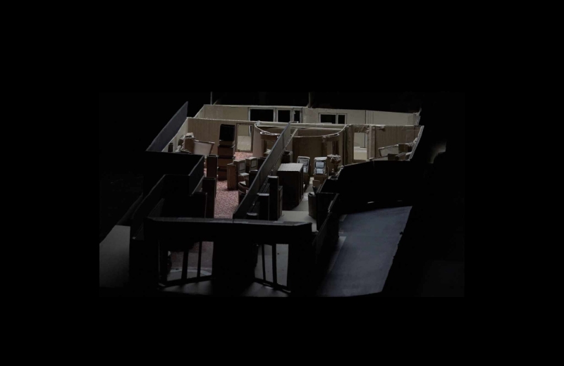Ins Zentrum rückt nun ein verkleinerter Nachbau der Frankfurter Merkur-Spielothek, ein Ungetüm aus Pappe, künstlicher als der George-Lucassche Original-Todesstern, erschreckender weil real. Eng, schlauchartig, ein Labyrinth der Leidenschaftslosigkeit, ganz so, wie der Text diesen Ort in der ersten Filmhälfte subkutan beschrieben hatte. Visuell aufgelöst in einer gleitenden, stockenden Raumerfassung, streng von oben, Raum für Raum, Pappstück für Pappstück, materiell ge-, durch die filmischen Mittel gefühlt endlos zerdehnt. Irgendwann geht das Licht im Model geht aus, die Rollladen fahren herunter. Wir müssen artig warten.