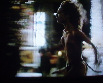 Irgendwo in "Drop Out" verbirgt sich eine durchaus an einschlägigen Vorbildern (Chandler!) orientierte Neo-Noir-Erzählung; nur, dass alles was hier Ermittlung und Plot ist, bei jeder Gelegenheit von der Dekoration - zugedröhnte Gitarristen, kratzbürstige Obdachlose, genüsslich ausgekosteter Toilet Humor, der bereits erwähnte Umschnalldildo - überflutet wird. Und dann wäre da noch der Voice-Over. Nicht die Stadt, nicht die Chandleresque Erzählung, und letztlich auch nicht, so wichtig und großartig sie ist, Manowskis Performance ist das Zentrum, von dem alles seinen Ausgang nimmt, sondern: Manowskis Erzählerinnenstimme, beziehungsweise die von ihr in teils halsbrecherischem Tempo formulierten Sätze, die mal "von außen" an die Bilder herantreten, mal von der Protagonistin direkt, die vierte Wand brechend, gen Kamera gesprochen werden.