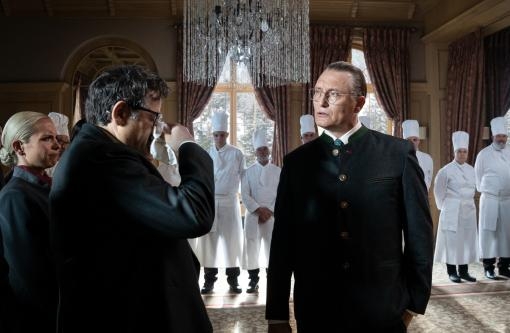 Zur aus der Zeit gefallenen Komödie "The Palace" und ihren entrückten Figuren passt das wiederum ganz gut. Der Film spielt Silvester 1999, während einige Superreiche das neue Jahrtausend begrüßen. Polanski baut das als episodische Nummernrevue voller elitärer Gäste auf, die sich selbst monumentalisieren, sich durch ihr Scheitern aber letztlich der Lächerlichkeit preisgeben. Zusammengehalten wird der Reigen durch den unermüdlichen Hotelmanager Hansueli (Oliver Masucci). Mit streng zurückgegelten Haaren und adrettem Trachtenjanker versucht er noch im aussichtslosesten Katastrophenszenario Schadensbegrenzung zu betreiben. Wo seine Kollegen die Geduld verlieren, findet er stets den richtigen Ton. Interessant ist diese Figur wegen ihres konsequenten Pokerfaces. Trotz reichlich absurder Wünsche der VIPs verrät kein ironisches Schmunzeln oder genervtes Augenrollen, was wirklich in ihm vorgeht.