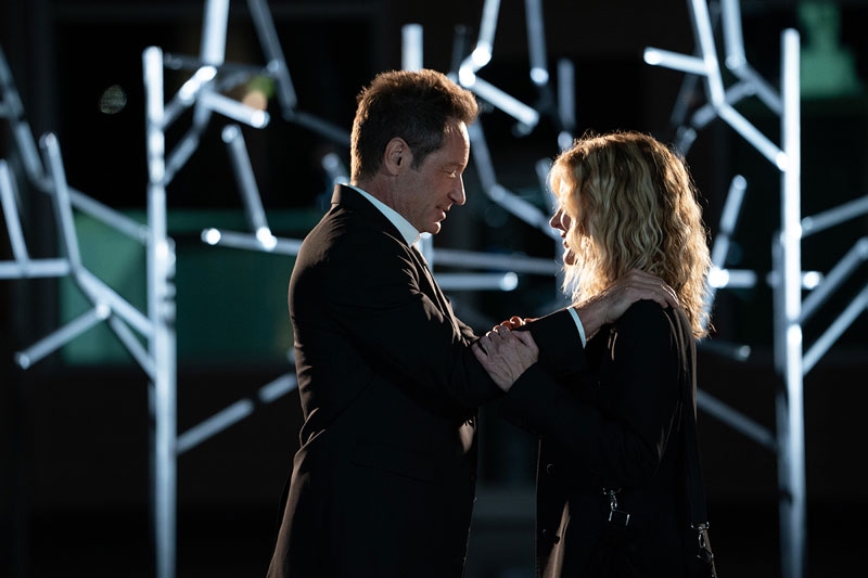 Nur allzu offensichtlich sucht "What Happens Later" zunächst den Abgleich mit diesen arrivierten Klassikern und deren Schauspieldynamiken. An einem Schalttag, "a magical day", trifft die von Ryan gespielte Willa beim Umstieg zwischen zwei Flügen auf Bill (David Duchovny), mit dem sie vor 25 Jahren eine lange Beziehung führte, die für beide auch nach der Trennung prägend bleibt. Duchovny gibt seine Rolle als grummelnd in die Jahre gekommener Vertreter der Generation X mit einer Überdrüssigkeit, für die es nicht mehr braucht als blasiert auf halb acht heruntergezogene Augen und eine sich darüber kräuselnde Stirn - die Zumutungen der Gegenwart macht er paradigmatisch an den Zumutungen zeitgenössischer Musik fest: "It used to be rhythm, not algorithm." Mit so jemandem lässt sich eher schlecht wieder anknüpfen, es sei denn durch äußeren Zwang: Wegen Schneeverwehungen werden alle ausgehenden Flüge vorübergehend ausgesetzt und Willa und Bill dadurch genötigt, die Nacht gemeinsam am Flughafen zu verbringen.