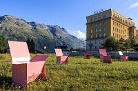 (zeit) Eine sehr schöne Bilderstrecke zu der St. Moritz Art Masters. Mit Werken von Ai Weiwei, Tobias Rehberger, Rune Guneriussen u.a., die in der Gegend rumstehen, damit Spaziergänger darüber stolpern. Noch bis 1. September in St. Moritz und Umgebung. (Foto: Sébastien De Ganay: "XL carton chair", © Daniel Martinek)