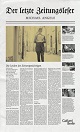 "Herzblut geschrieben, mit Scharfsinn gefasst: Wenn einst das letzte Exemplar einer gedruckten Zeitung vergilbt und zerfallen sein wird, hat Michael Angele mit 'Der letzte Zeitungsleser' der Lebensform Zeitung schon längst ein Monument gesetzt."(Klappentext)