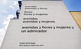 (<--- zdf-video) - "avenidas", das Gedicht von Eugen Gomringer, ist 60 Jahre alt. Seit 2011 ziert es eine Fassade der Alice-Salomon-Hochschule in Berlin. Doch der AStA will, dass es wegkommt, weil es sexistisch sei.Kulturzeit vom06.09.2017 (2 min)