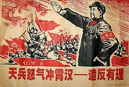 1966: "In China beschliesst das Politbüro die "Grosse proletarische Kulturrevolution". Hunderttausende werden mobilisiert. Ziel der von Mao lancierten Bewegung ist die Festigung seiner bröckelnden Macht. Viele Chinesen machen ihn verantwortlich für die Industrialisierungskampagne, während der 45 Millionen Menschen verhungert waren. Mit der Kulturrevolution will er die Macht wieder an sich reissen. Die Säuberungswelle stürzt das Land in ein blutiges Chaos. Die meisten alten Parteikader werden ihrer Ämter enthoben. Die Revolution, die immer mehr an Zugkraft verliert, dauert bis zu Maos Tod 1976. Treibende Kraft ist Jiang Qing, Maos vierte Frau, die nach Maos Tod zum Tode verurteilt wird und später Suizid begeht."