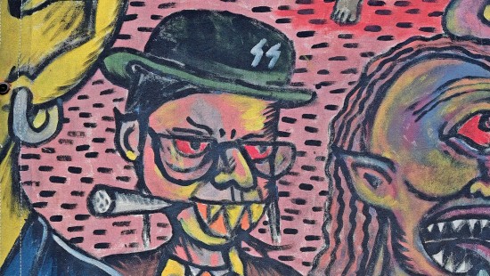 < --- Ein Ausschnitt des Großgemäldes des indonesischen Künstlerkollektivs Taring Padi auf dem zentralen Friedrichsplatz. (Bild: dpa) Abhängen!(faz)